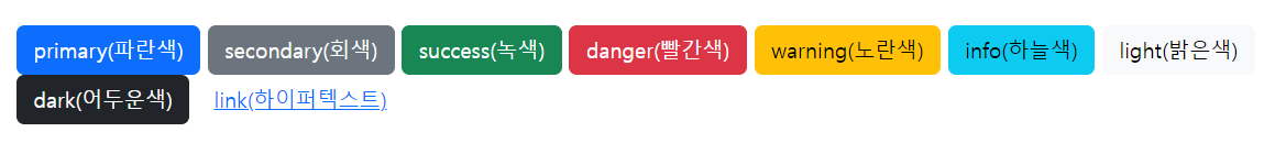 - 부트스트랩으로 버튼을 시작할 때 class 내부에 btn(버튼 시작) 기능을 작성해주고, 추가로 작성하고픈 내용을 작성