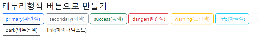 - 부트스트랩으로 버튼을 시작할 때 class 내부에 btn(버튼 시작) 기능을 작성해주고, 추가로 작성하고픈 내용을 작성