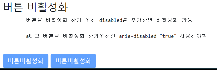 a태그 버튼을 비활성화 하려면 aria-disabled="true"를 더 추가해야함.