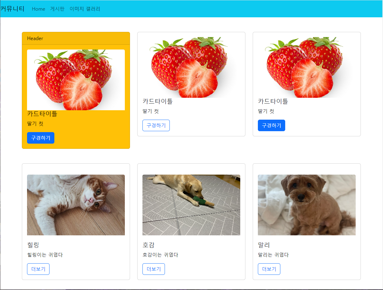 | 부트스트랩 실습 - 커뮤니티 만들기(갤러리) (0) | 2024.05.24 |