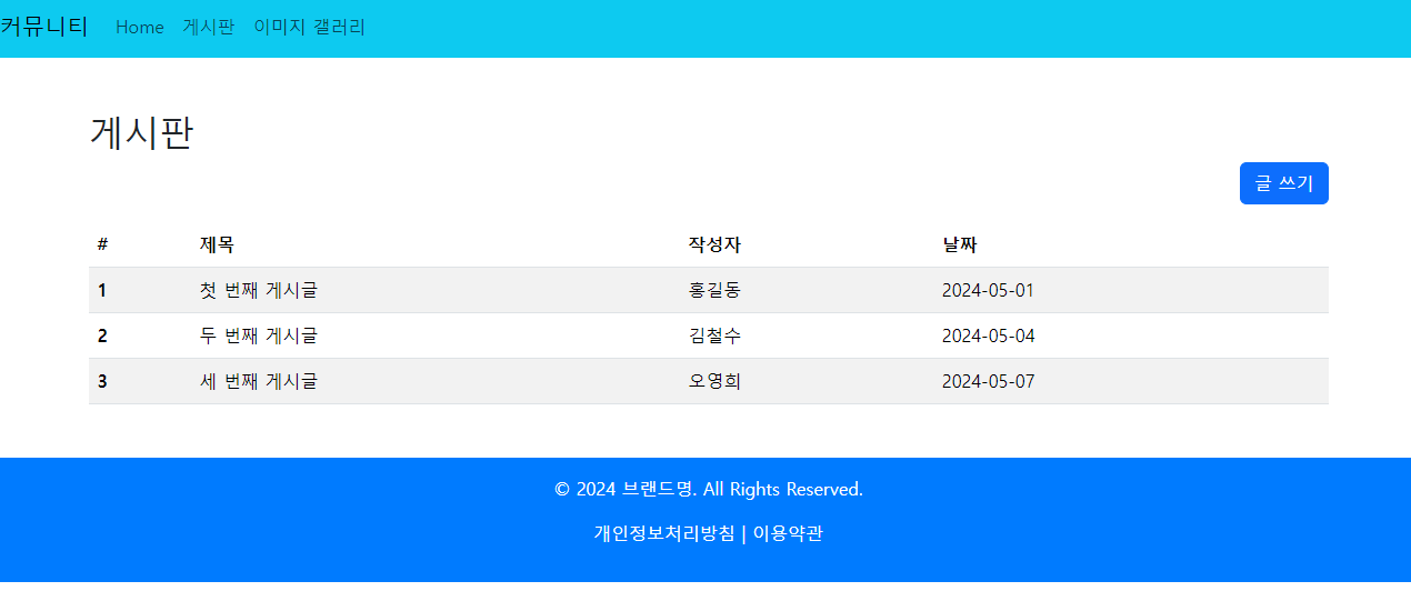 부트스트랩 실습 - 커뮤니티 만들기(게시판)