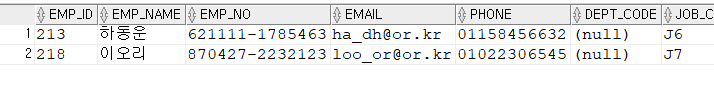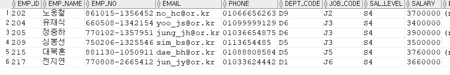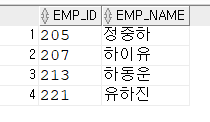 -> 지정된 테이블의 모든 행에서 컬럼명이 일치하는 컬럼값 조회