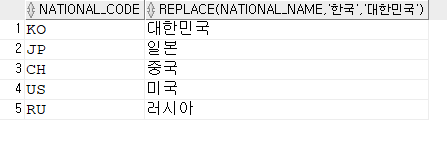 REPLACE : 특정 문자열을 대체할 때 사용