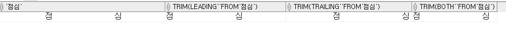 TRIM의 경우 문자 1개만 가능. '' 안에 문자가 2개 이상 들어가면 에러가 발생 EX) 스페이스바 2번