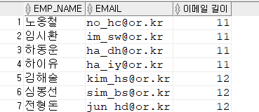 LENGTH(문자열 OR 컬럼명) : 문자열의 길이 반환