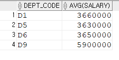 - 여러개의 결과 값을 산출하기 위해서는 그룹 함수가 적용된 그룹의 기준을 ORDER BY 절에 기술해서 사용