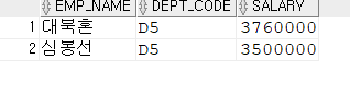 - 주의할 점 : 집합 연산에 사용되는 SELECT문과 SELECT문이 동일해야함