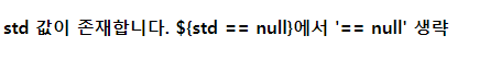 <h4 th:if="${std}">std 값이 존재합니다. ${std == null}에서 '== null' 생략</h4>