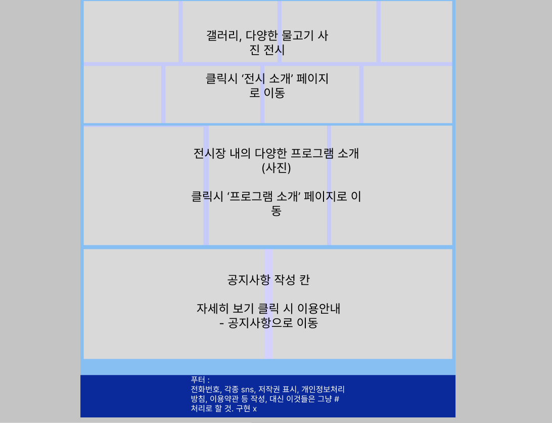 메인 페이지는 푸른색 위주로 하되, 다른 페이지들은 흰색을 주 바탕으로 하기로 설정했다.