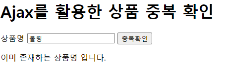 <h1>Ajax를 활용한 상품 중복 확인</h1>