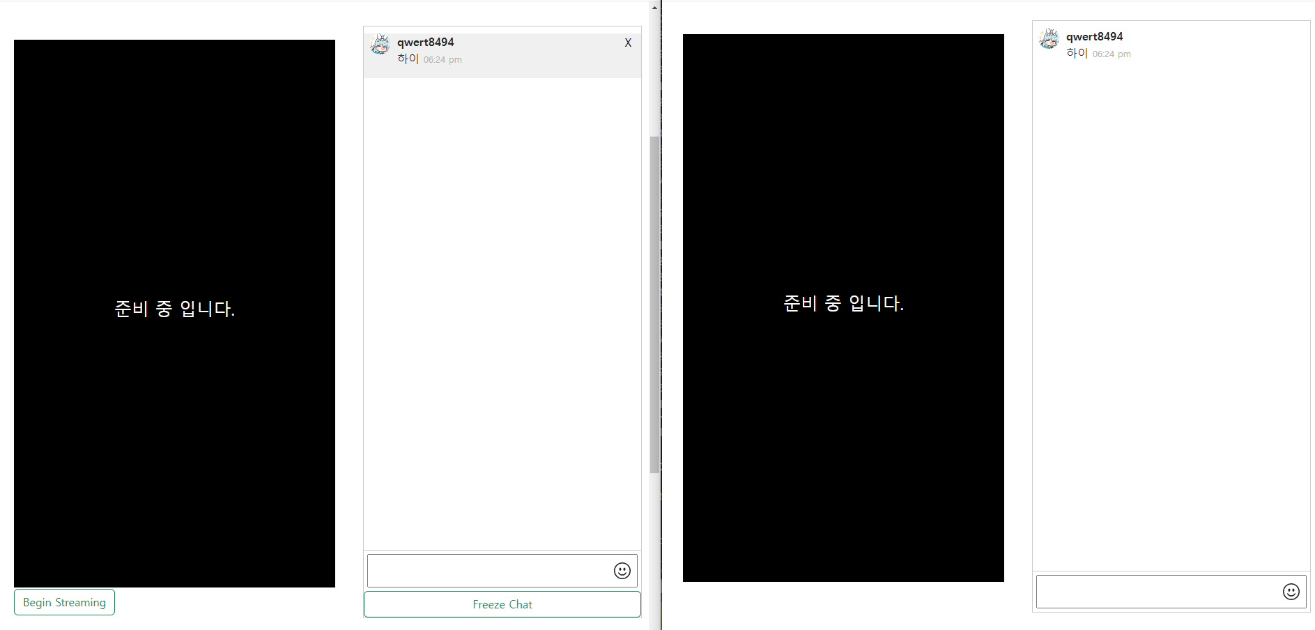 오늘은 관리자에게만 스트리밍 시작, 채팅창 동결, 채팅 메시지 삭제 버튼이 보이도록 설정.