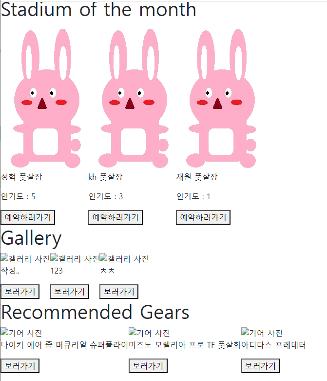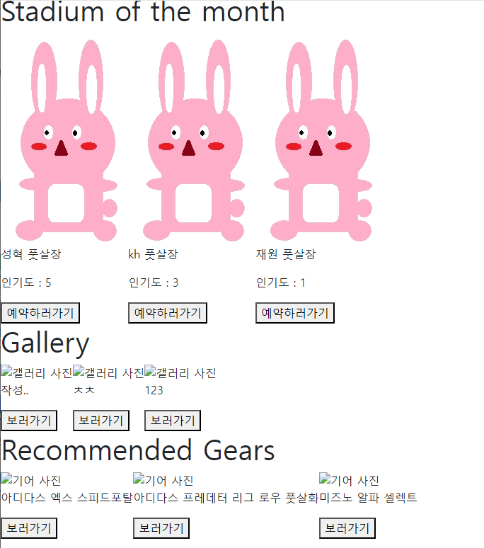그리고 갤러리 게시판과 용품 장터에서 랜덤으로 3개를 가져와 페이지에 보이도록 하였다.