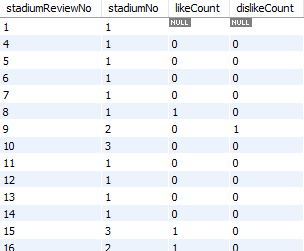스타디움 별로 좋아요와 싫어요를 각각 합산하고 좋아요 총합에서 싫어요 총합을 뺀 값을 totalLike로 지정하였다.