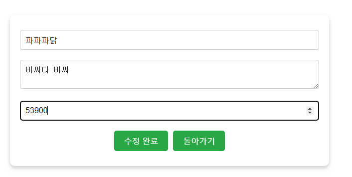 수정, 삭제 모두 DB와 연동이 되어 있음을 확인.