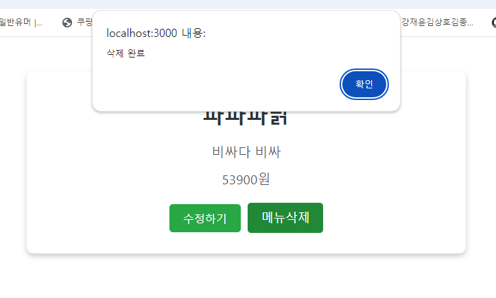 어차피 메뉴 리스트 불러올 때 DB에서 불러오므로 DB 내에서도 삭제 됐음을 알 수 있다.