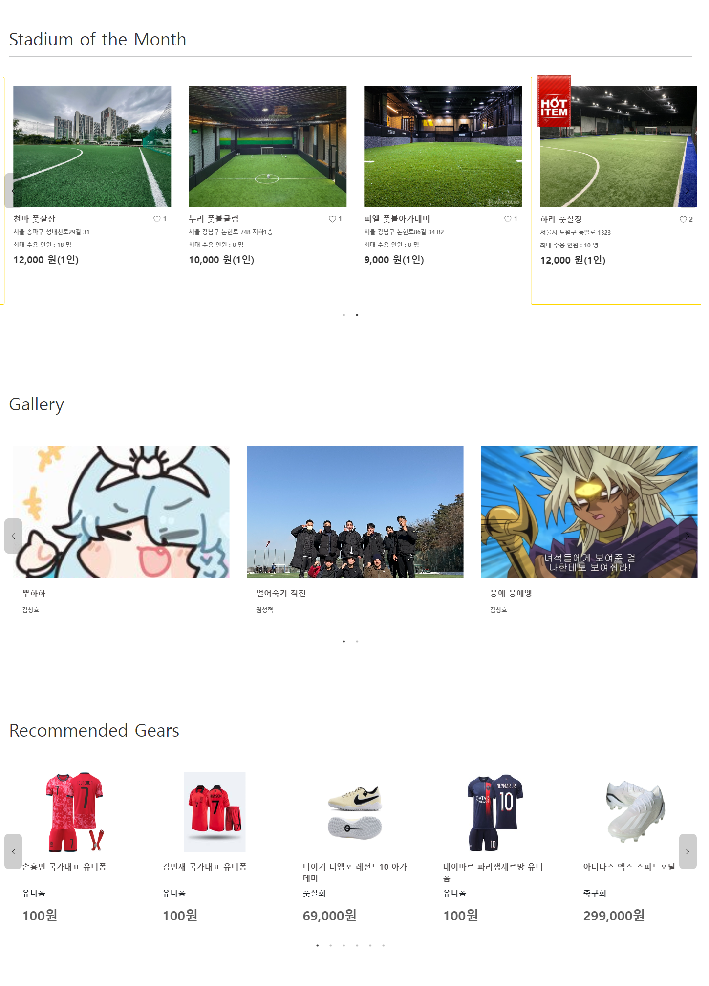 전체적으로 다듬은 메인페이지 콘텐츠들. 항목당 3개씩 나오게 하는 건 너무 심심했다.