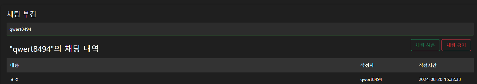 검색한 아이디에게 채팅 금지 / 허용 권한을 주는 버튼을 주는 것.