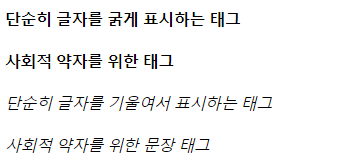b : 단순히 글자를 굵게 표시하는 강조 태그