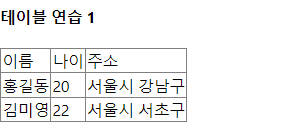 - table 태그는 행, 열을 작성하기 위한 공간을 나타냄