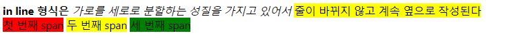 in line 형식 : 가로에서 내용을 작성해준 만큼만 영역을 차지