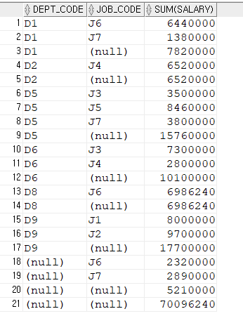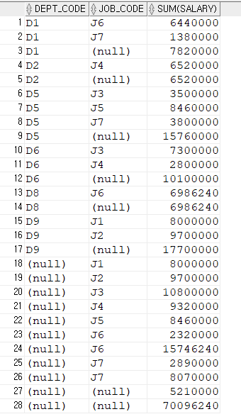 ROLLUP 함수 : 그룹별로 중간 집계를 처리하는 함수