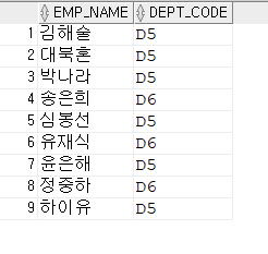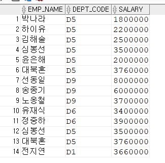 - 주의할 점 : 집합 연산에 사용되는 SELECT문과 SELECT문이 동일해야함