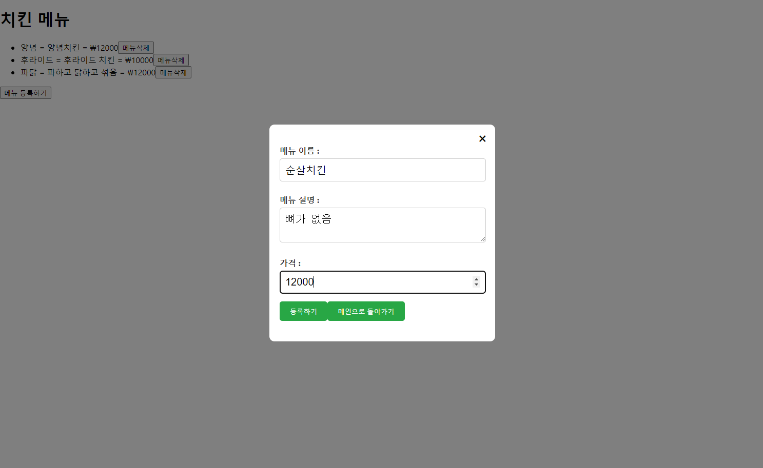 먼저 메뉴를 DB에 넣을 ChickenForm.js