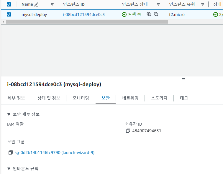 인스턴스 창에서 해당 인스턴스 클릭 후 아래 보안 탭에서 보안 그룹 링크 클릭.